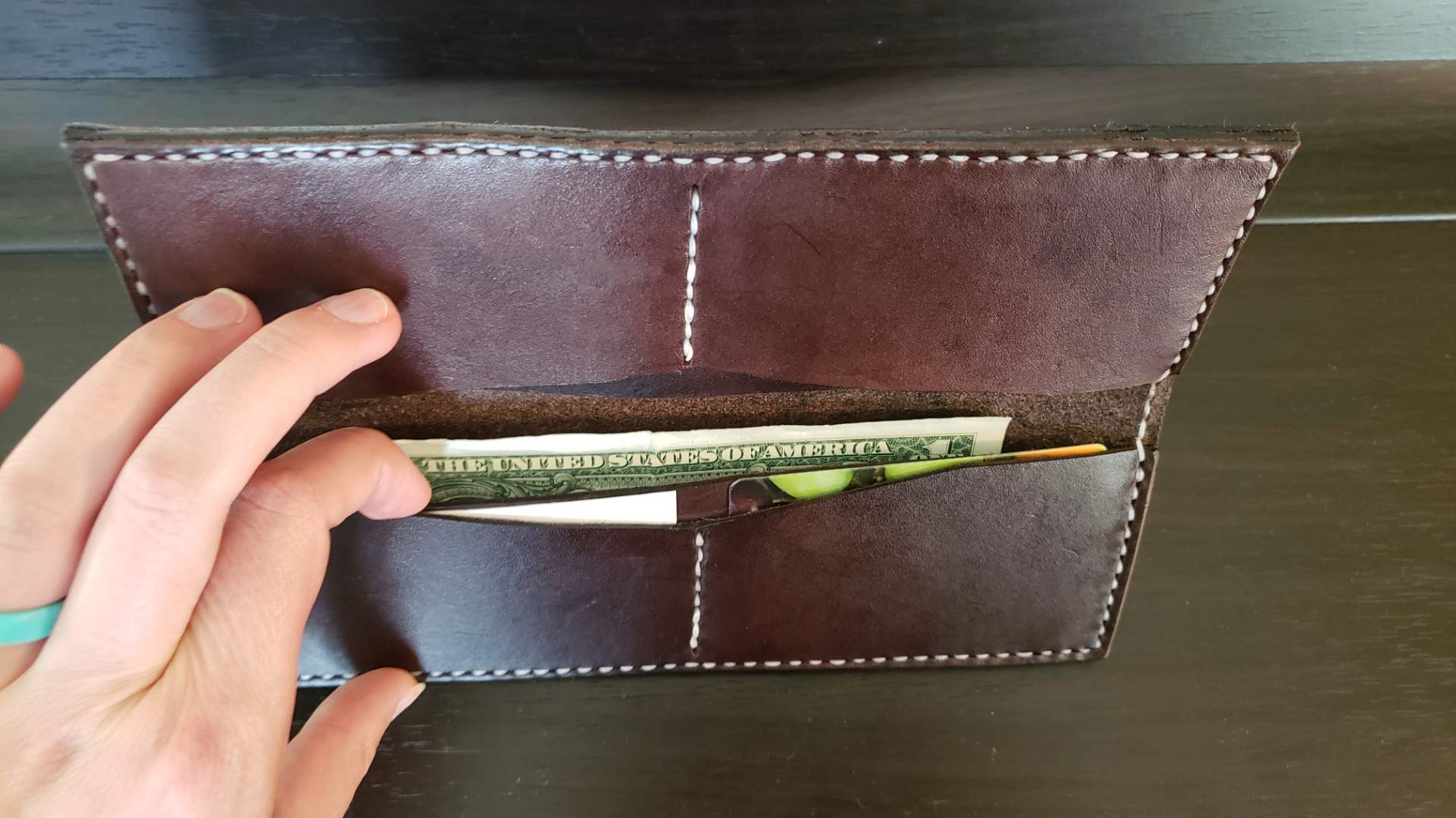 -features 2 pockets for cash, 4 for cards